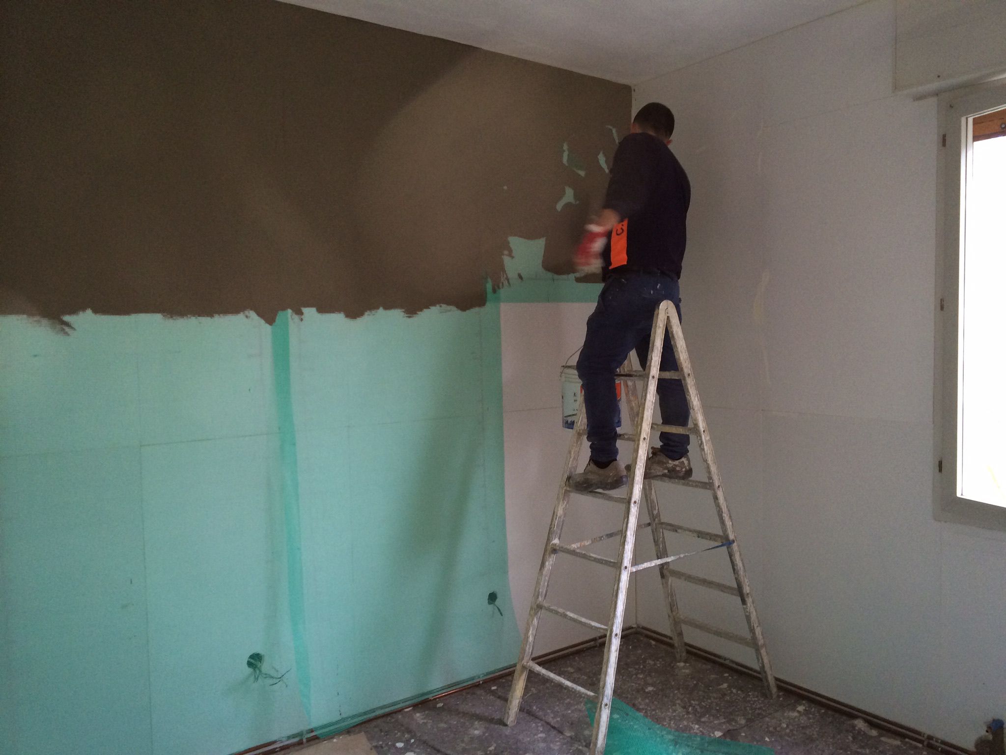 Realizzazione di cappotto interno con relativa stuccatura e tinteggiatura. La soluzione ottimale per chi può vuotare la casa e fuori non vuole cambiare l'estetica. Ad esempio pietra vecchia o comunque una pietra a vista.